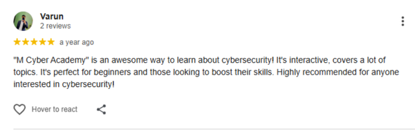 M Cyber Academy is India’s leading Ethical Hacking and Cybersecurity Training Institute. We empower learners with practical, hands-on training in Ethical Hacking, AI Security, Penetration Testing, and Digital Forensics. Our goal is to create the next generation of cybersecurity experts ready to secure the digital world.
